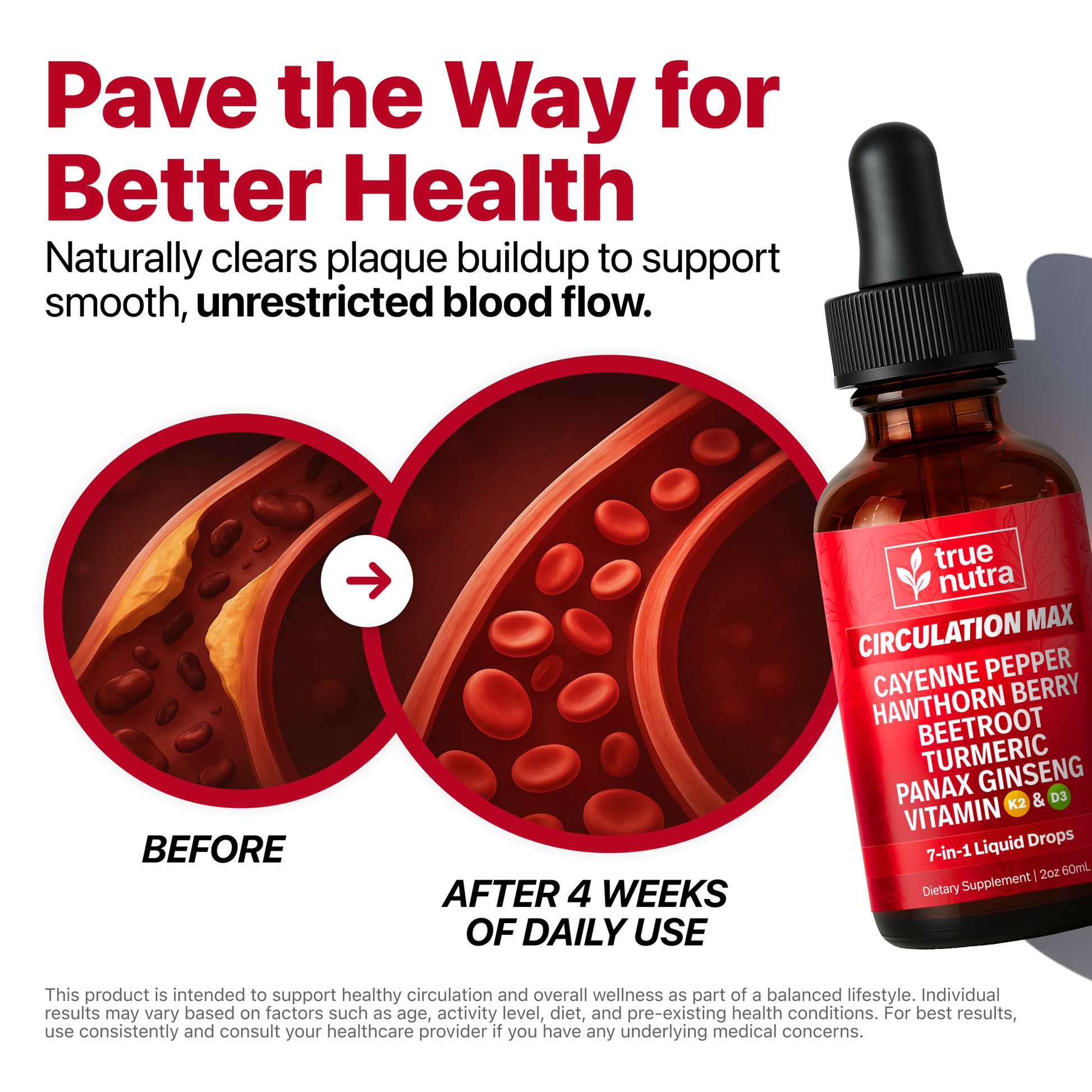True Nutra's Circulation Max helps thousands of men & women over 40 restore healthy circulation, protect their heart, and feel in control of their health again.